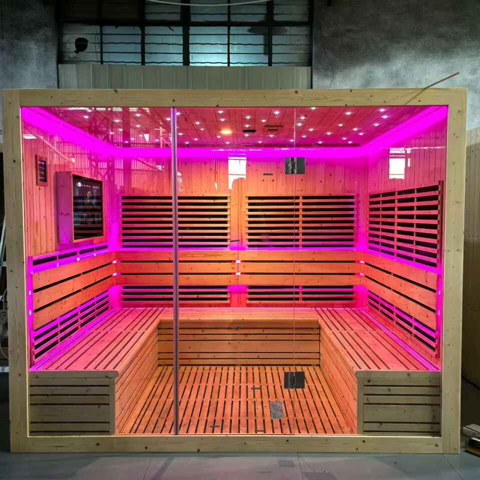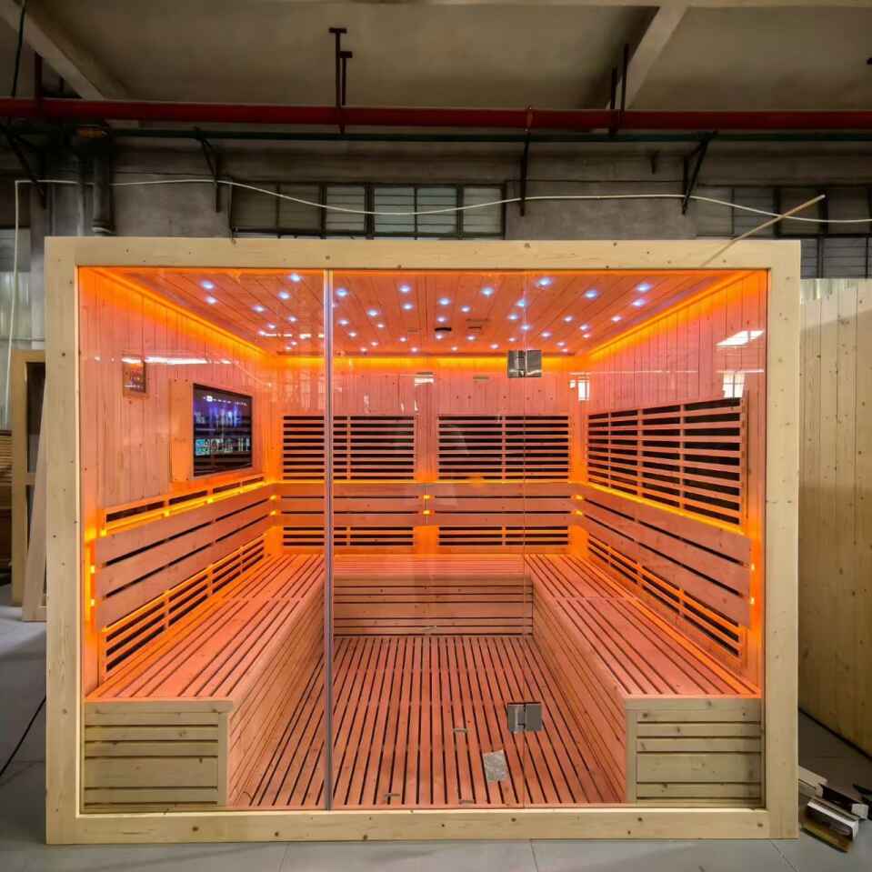 Êtes-vous à la recherche d’une solution de sauna spacieuse et luxueuse pour la détente en groupe, la socialisation ou un usage commercial ? Notre sauna à infrarouge lointain en bois pour 5 à 10 personnes avec télévision LCD est conçu pour répondre à vos besoins, intégrant des matériaux haut de gamme, une technologie de pointe et une conception centrée sur l'humain.